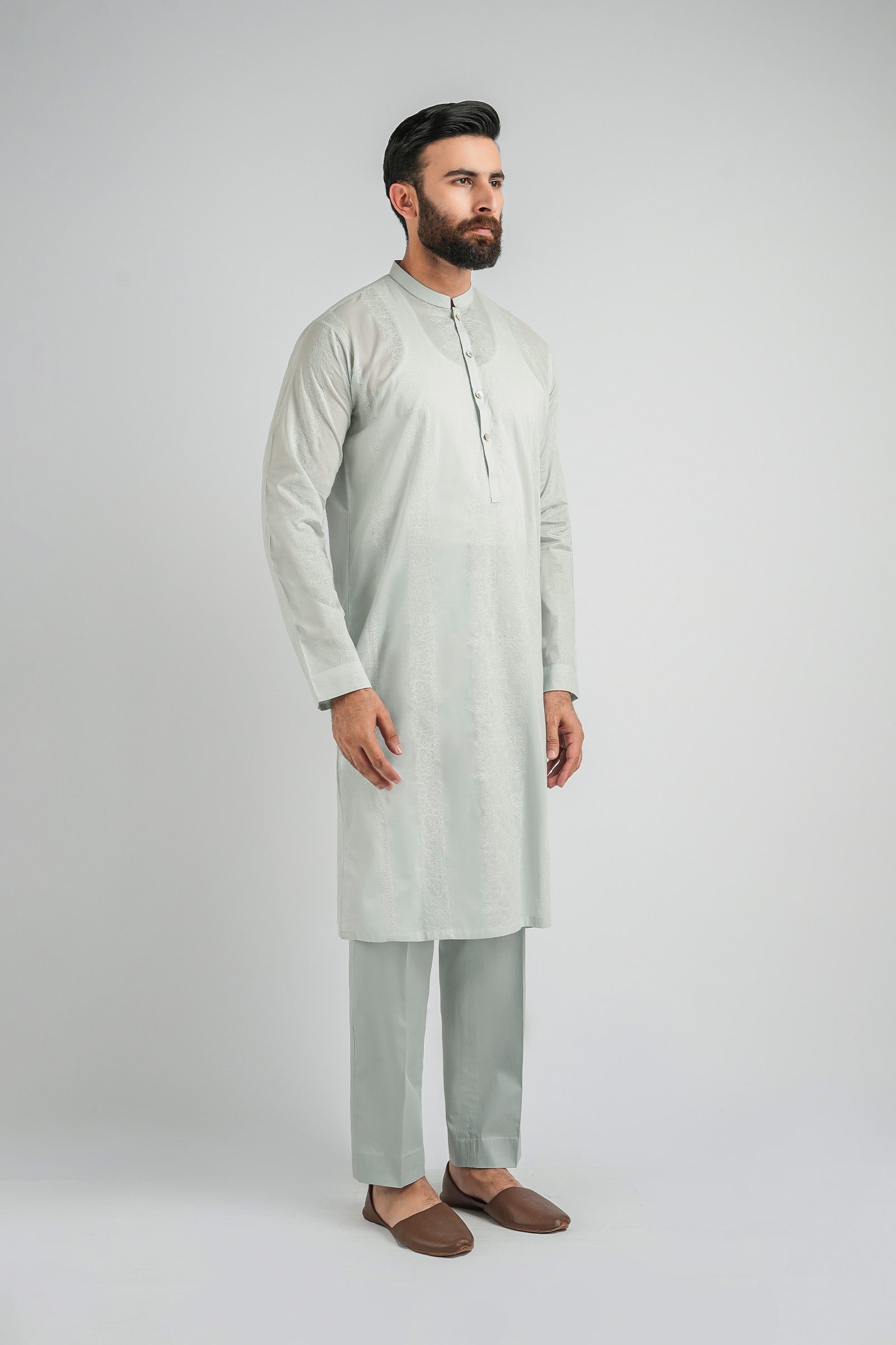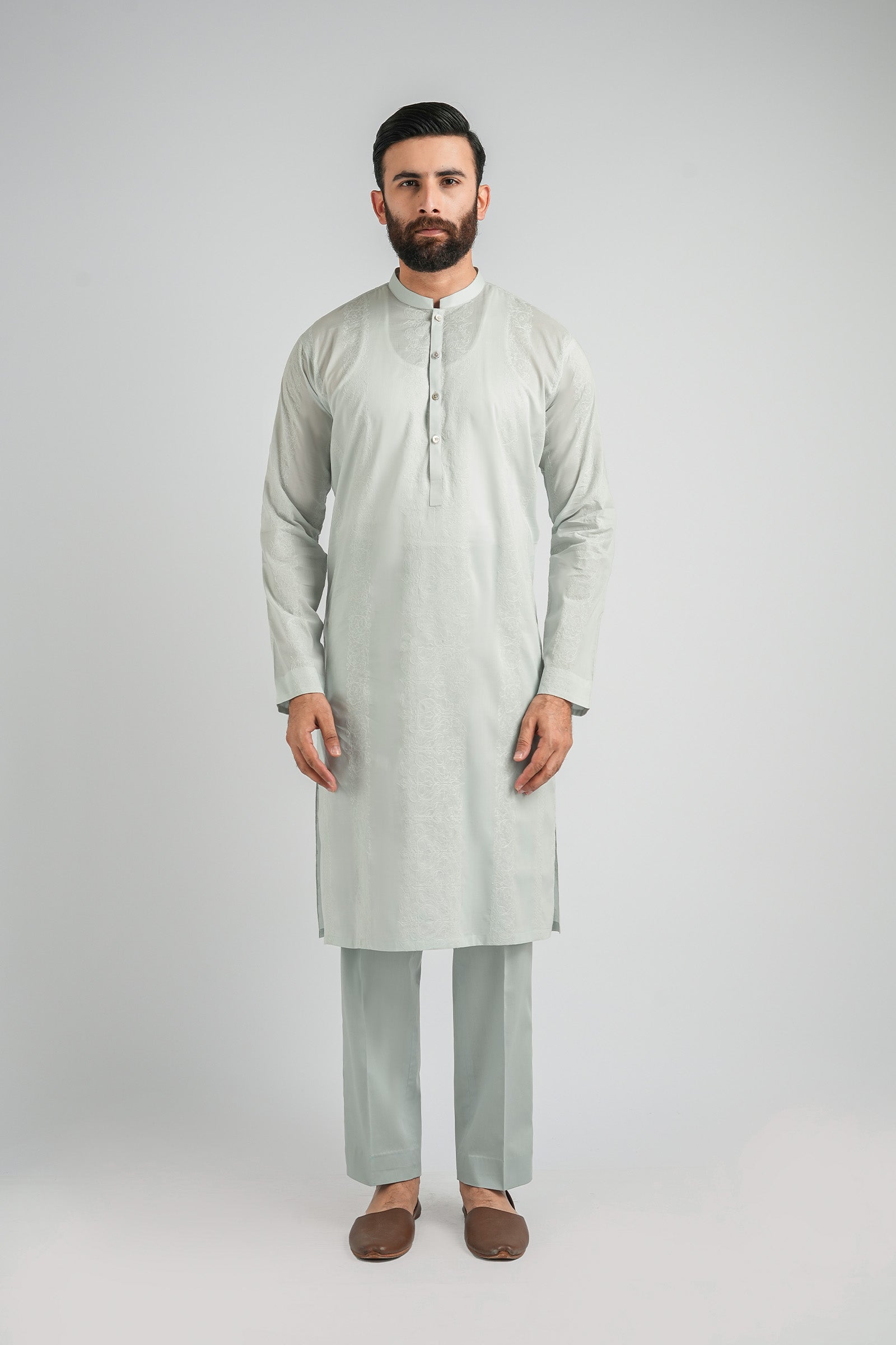 A timeless classic, redefined with craftsmanship. This kurta is tailored in a classic silhouette and cut from the finest 100% cotton for breathable comfort and effortless wear. Fully adorned with signature embroidery patterns, it strikes the perfect balance between tradition and modern refinement β making it a statement piece in its own right.
