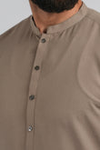Designed with clean, tailored detailing, it features a structured band collar, a neat visible placket, a straight hem, cuffed sleeves, and a smart-fit shalwar that enhances its polished appeal. Timeless, versatile, and distinctly sophisticated.